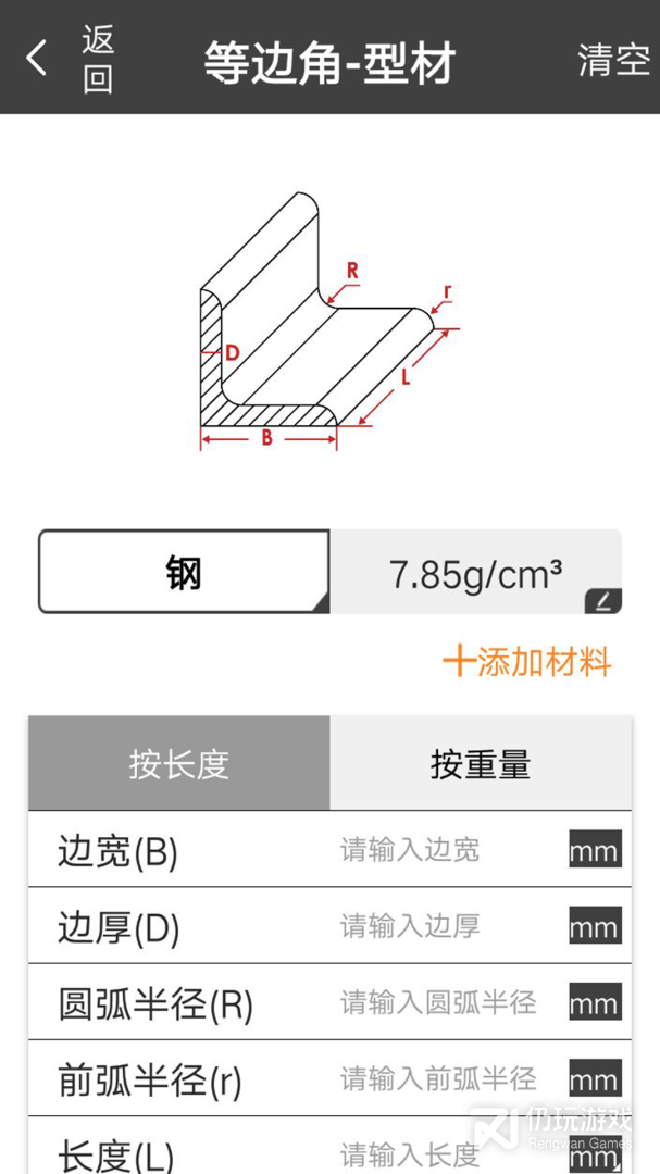 该应用程序包含许多形状和材料可供选择。您可以通过输入金属的尺寸和材料来计算重量。您也可以更改数量并添加每重量单位的价格以计算总价。您还可以通过输入其他尺寸和重量来计算钢筋的长度。您可以添加自己的金属以进行更精确的测量。
