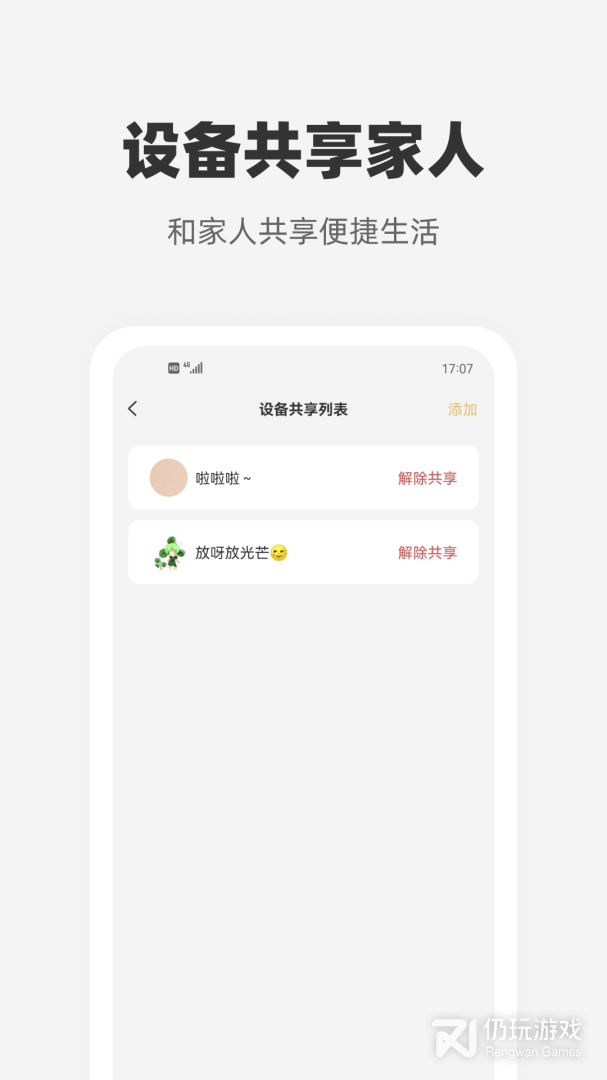 1、设备共享给家人朋友,为您打造美好智慧生活