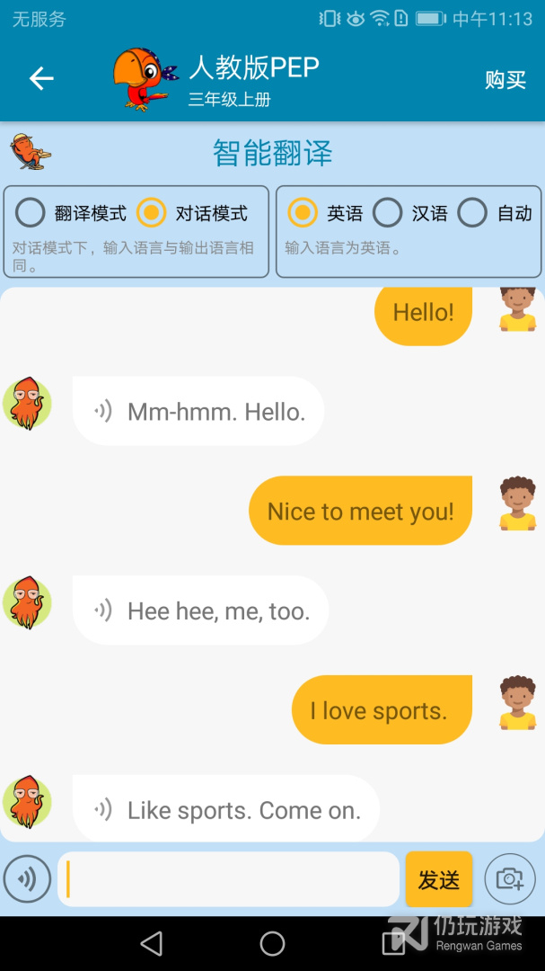 5、 支持与机器人小鱿进行人工智能(AI)对话和自动翻译,并支持拍图识别对话模式,可以拍摄加重任意物品和小鱿进行自由对话,是英语学习的智能陪练小助手;