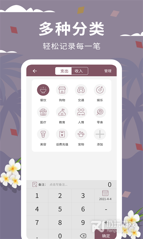 5、分类记录:用户可以根据消费的类型进行分类记录,例如工作、美食、购物等等不同的类型进行统计,你可以根据统计结果来查看消费占比