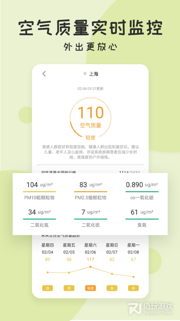 1、软件拥有非常简洁的画面与强大的天气预测功能,为用户带来精准的7天预测、空气质量、天气降雨等功能,为你带来最完美的生活体验