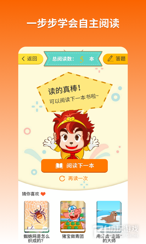 在《悟空阅读》让孩子每天读个小故事,培养孩子阅读习惯;拓展词汇,增长知识,读书写作快人一步,在阅读的陪伴下快乐成长。