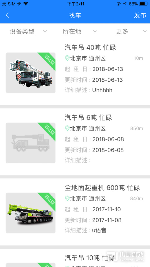 当工程建设方或施工方在平台上发布求租需求后,平台根据LBS(地理位置服务)技术,把信息有效匹配并主动推送给相关的机主。机主既可以随时在平台自主浏览求租信息,并与对方直接联系;也可以将自己的设备主动发布到平台设备库,让业务自动找上门。