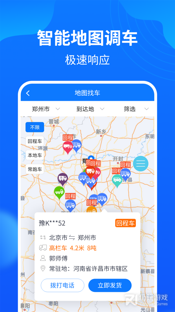 √ 一键配货:自动发布返程车源,为您推送最适合的货源,降低返程空载率