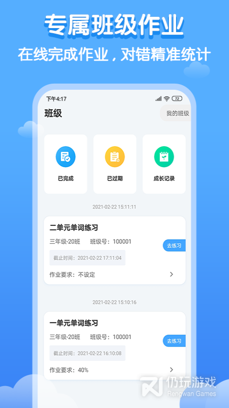 2、软件上面可以看到布置的作业需要用户们完成,进行对知识的巩固。