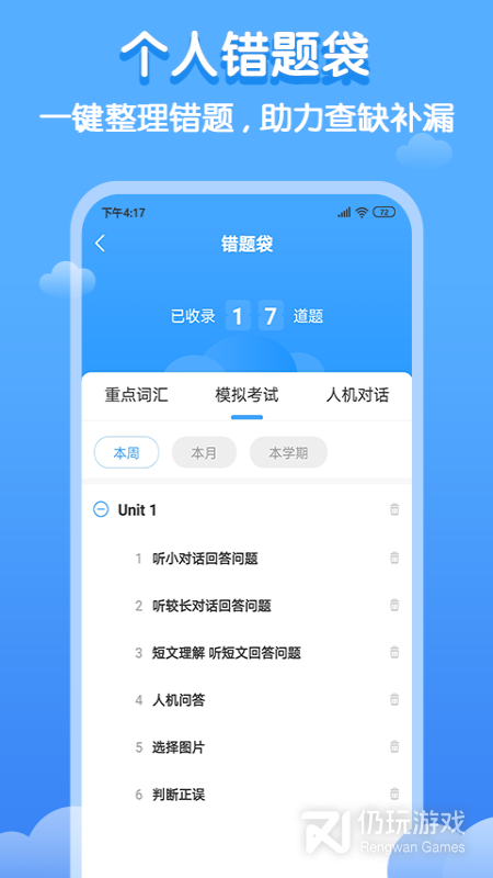 2、软件拥有专属班级作业,智能口语测评,人机对话训练,错题袋等等功能服务,可以帮助用户更好的英语口语学习