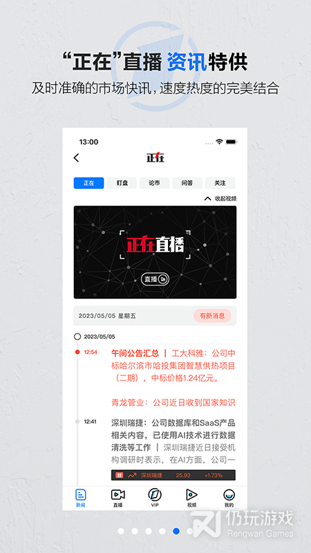 1、软件为用户提供了A股投资理财、商业决策、宏观分析方面的资讯。全新上线VIP板块,为你提供高价值专属内参,洞察市场、商业先机,“视频”一级频道,谈股论金、今日股市、公司与行业也在里面哦