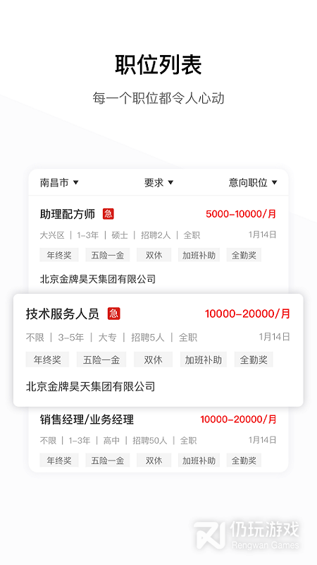 3、根据您的职位搜索,app会为您推送相关的职位招聘内容;