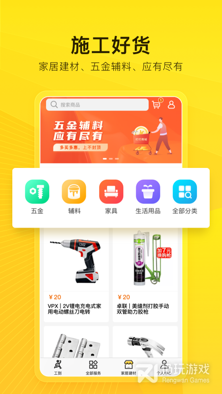 1、叮叮商城为广大工友提供实用的施工工具、五金配件、以及生活中的日常用品,商品质量有保证,性价比高