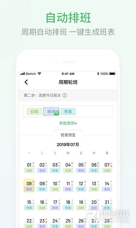 排班日历,是一款专门为倒班、值班工作人群设计的软件。支持手动和周期两种排班方式快速生成自己的工作专属班次日历,设置依据不同班次自动响铃的轮班闹钟,为每一天添加特定备注提醒自己。界面清爽,交互简单,没有广告且免费。复杂的排班周期计算和每天手动设置系统闹钟再也不会成为困扰的问题。我们致力于服务所有的倒班人群,为夙兴夜寐的工作生活增添一抹色彩。“每个披星戴月的夜晚,都有我们安心的陪伴”。