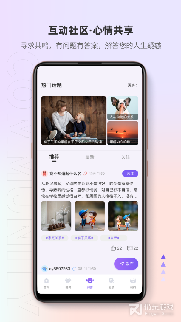 4、互动社区/心情共享,寻求共鸣,有问题都可去求助
