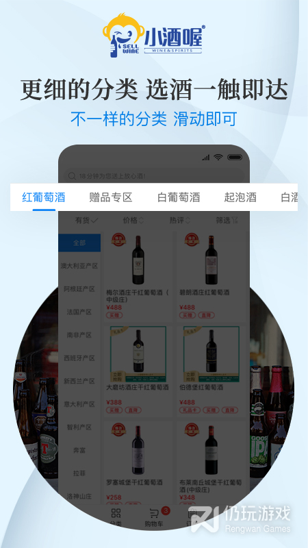 3、多种多样的品牌好酒,还能针对同一类酒进行原产地筛选