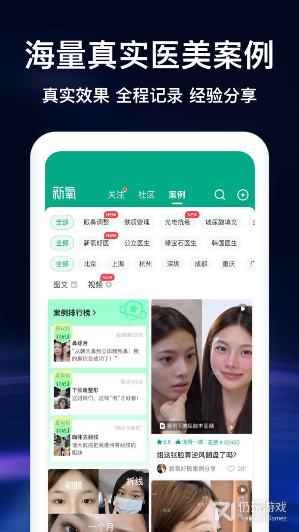 新氧美容是整形美容服务软件,在新氧美容app中,用户可以有效的看到大量的整容日记,以及全新的魔镜功能,可直观展示双眼皮、瘦脸、微笑唇等17个不同具体项目的真实模拟术后效果。
