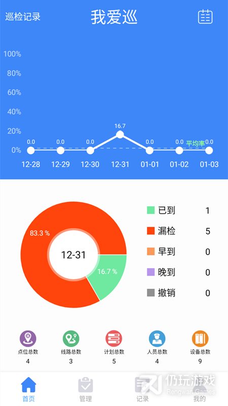 1、我爱巡app,日常巡检必备的辅助app,支持考勤管理、线路管理、巡检点管理等多种功能,高效协作,轻松完成每日巡检任务,做好工作记录,生成信息报表,让巡检更轻松