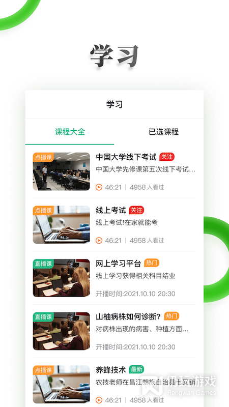 2、用户可以在这款软件中学习不同的网络课程以及许多关于乡村振兴和发展的直播课程,软件通过各种功能可以更好地为用户服务