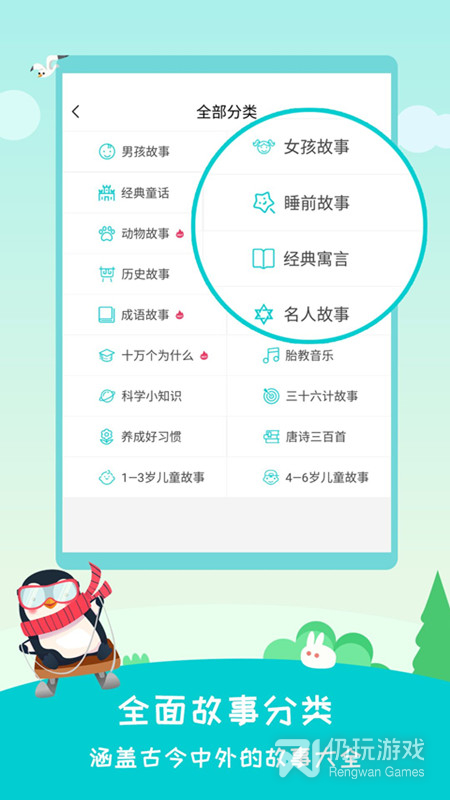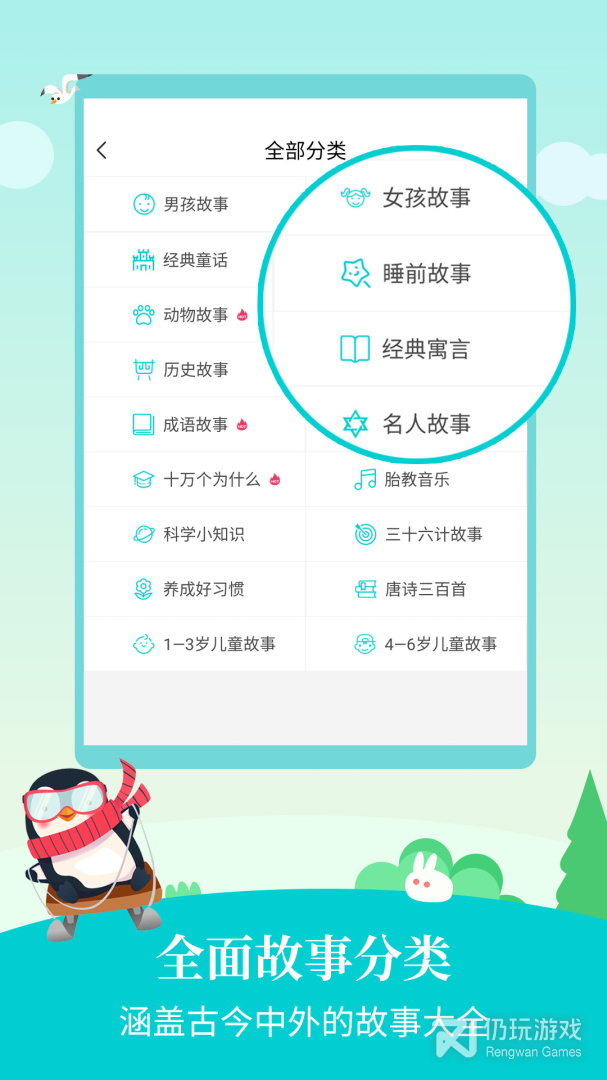 3、全面故事分类,涵盖古今中外所有的故事,可畅享收听精彩故事
