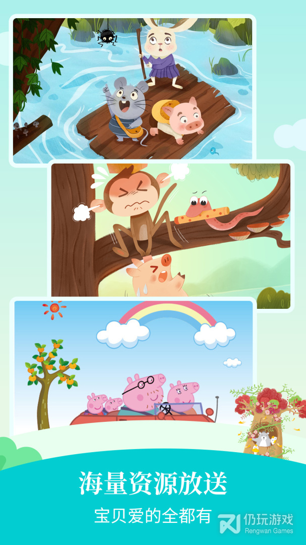 2、内容丰富,经典儿歌、英文启蒙、热门精品动画、诗词国学、成语故事、睡前故事全都有,资源,高清音质,儿童专属画风,精选内容寓教于乐,宝宝开心!爸妈放心
