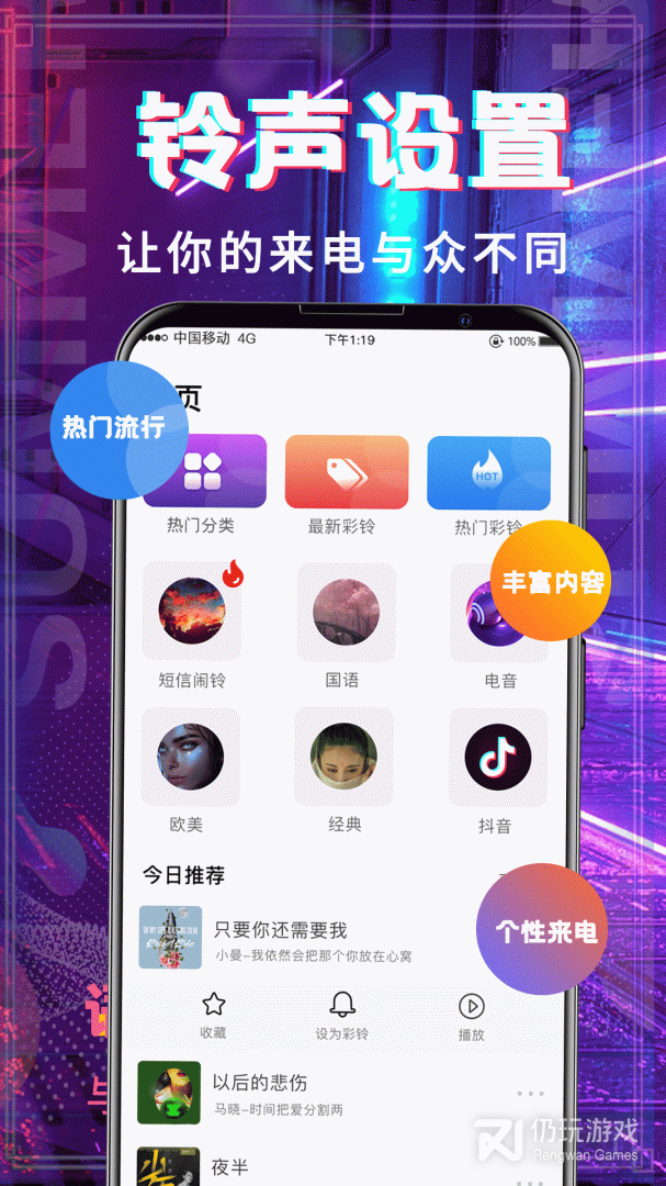 【铃声设置】覆盖全网热门音乐及小视频等,种类齐全,更新快速,海量来电视频背景,炫酷多样的来电铃声背景,告别单调的来电铃声背景,精心挑选热门彩铃、国语流行、欧美元素、抖音网红、影视搞笑综艺、搞怪达人、热门游戏、卡通动漫等,应有尽有,总有一款满足独特的你;