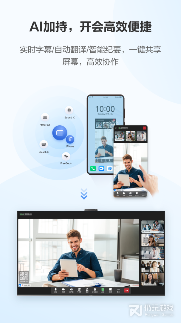 2、支持计算机、手机、平板、智慧大屏、华为会议终端、第三方会议终端互联互通,信息在各个终端间无缝流转