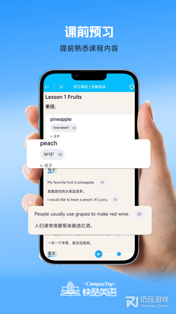 2、平台通过趣味动画以及游戏化的方式来增强英语学习的趣味性,让英语变得不再枯燥无味,同时通过多场景多方式教学帮助学生培养英语语感,提升英语水平,需要的可以来快酷英语进行使用