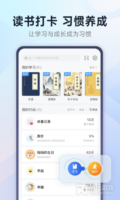4、可以在这里添加自己的习惯养成内容,用户就可以通过小行动轻松打卡