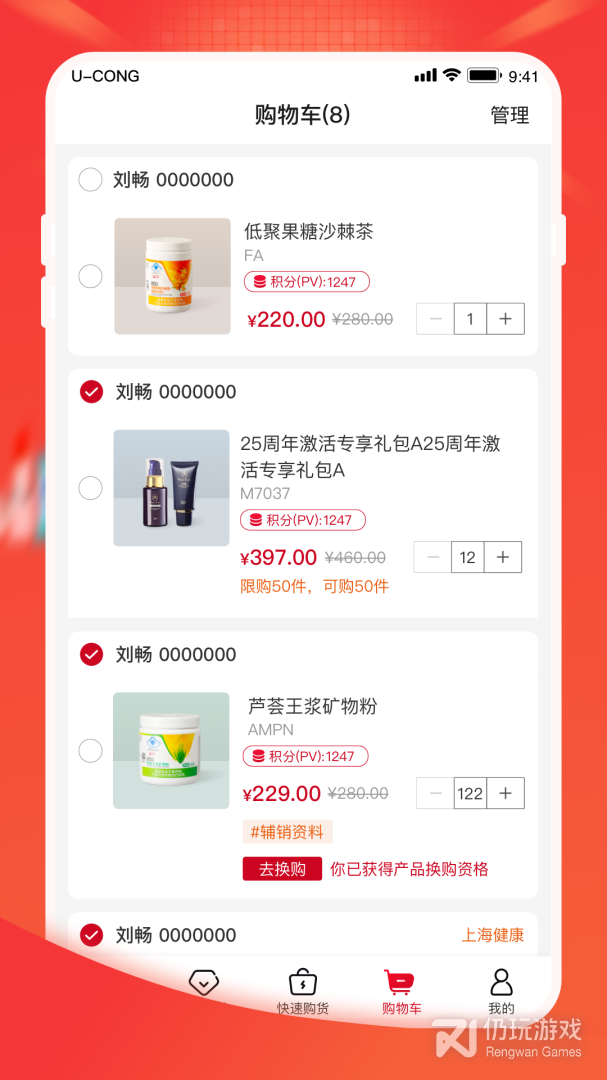 轻松购物:浏览产品详情、快速下单、购物车、订单查询、代客下单、配送管理等。