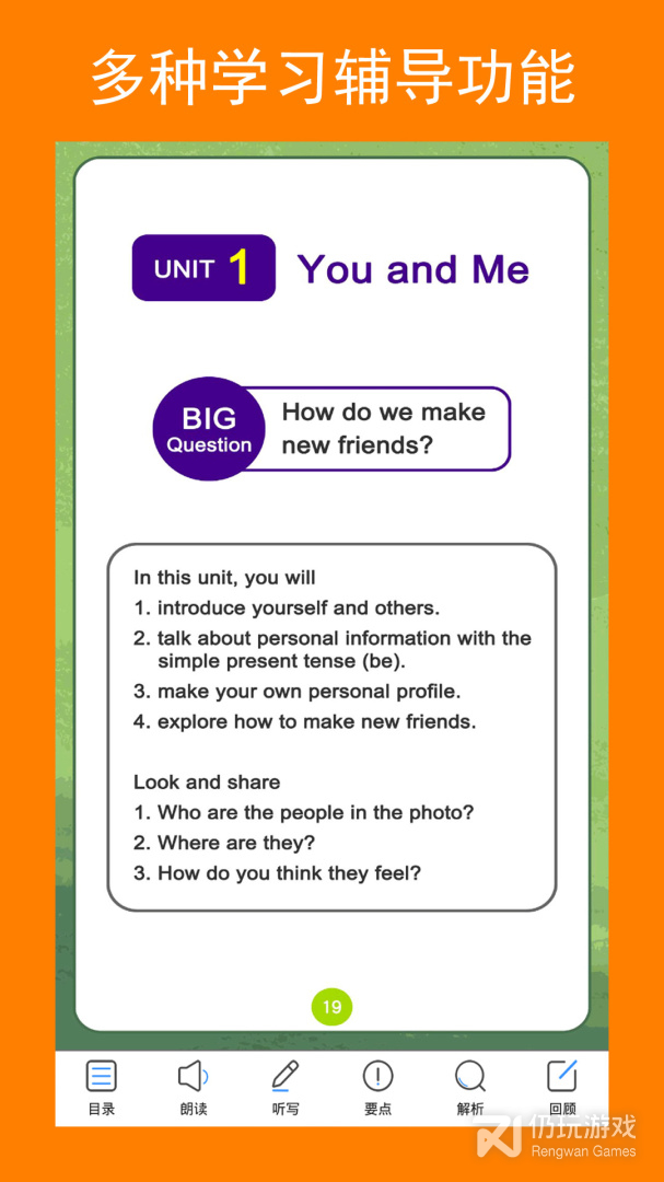 2、新目标英语七上电子书软件上直接可以点读学习,为你提供贴心辅导,利用新目标英语七上轻松自学