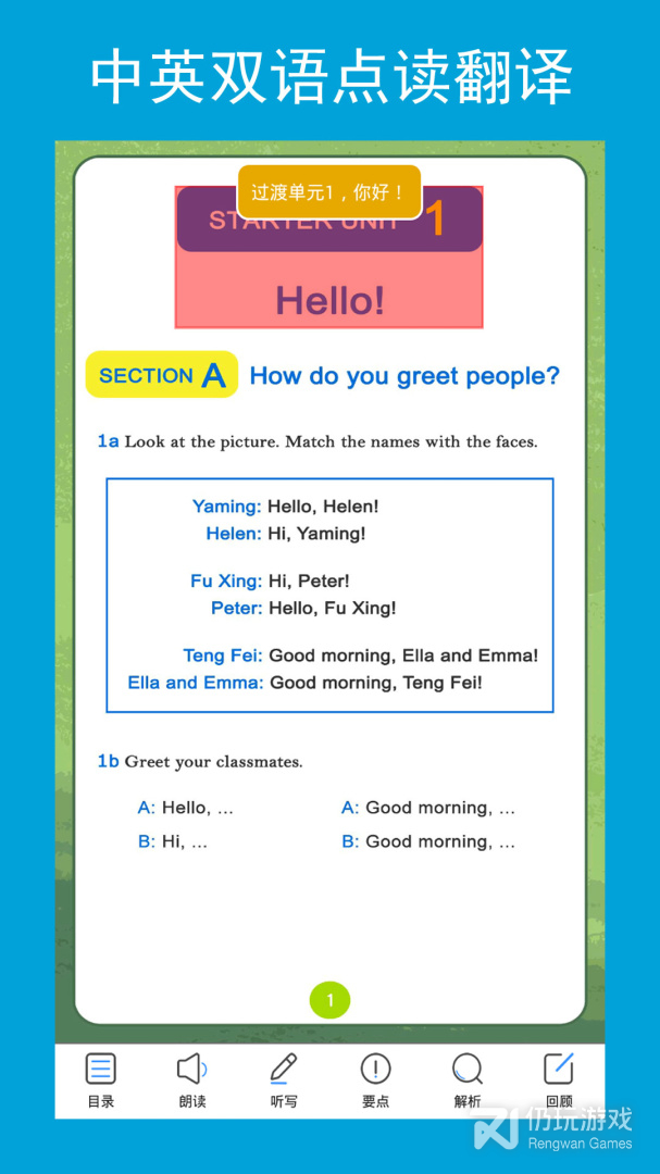 1、新目标英语七上还具备点读功能,每篇文章都有专业的人声课文朗读,和教材配套的朗读材料是一样的,学生可以反复听,跟着一起读,纠正发音的问题,也能快速背诵整篇文章