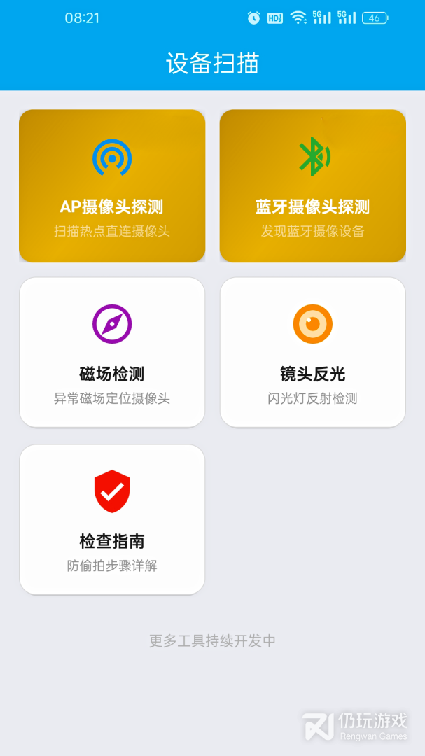 3、帮助用户通过手机快速检测出各种隐藏的摄像头,扫描快速,定位精准,适用于多种场合,为你的个人隐私添加一份保障