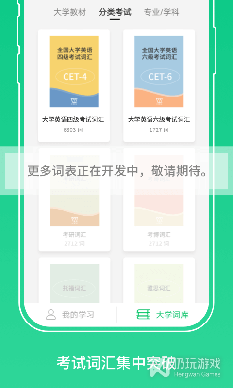 2. 新增英语四级、六级及考研词汇三本教材,全面覆盖主流学习需求,构建阶梯式词汇学习体系。