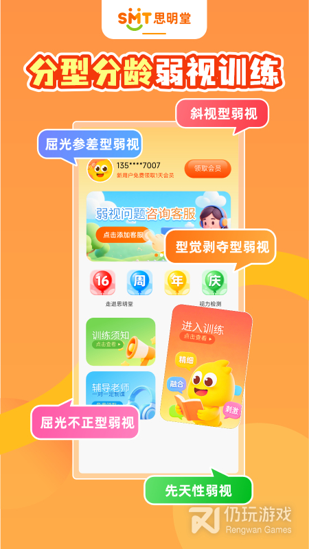 1.旨在通过物理疗法,多种颜色的视觉刺激,激活眼细胞,减少对小孩身体造成的伤害,从此甩掉眼镜。