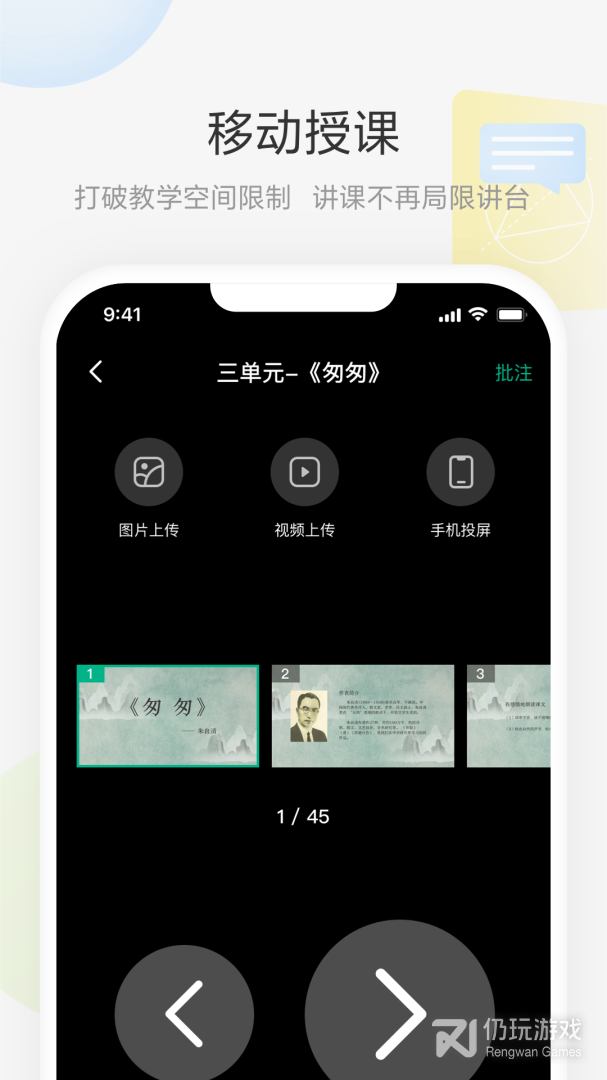 3、手机中的教学资源及课件均可上传至云端,支持随时下载取用,无需u盘拷贝的繁琐程序。使用移动授课助手,只要有网络,处处是课堂