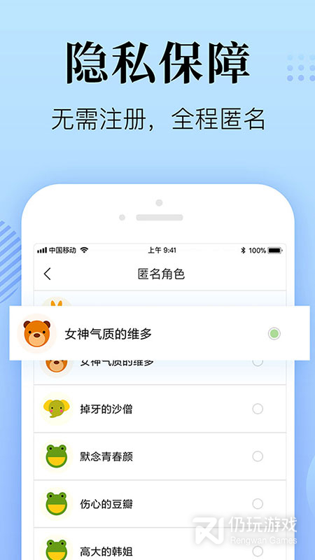 6、用户可以自由的选择对应的匿名角色,这样可以保护您的隐私