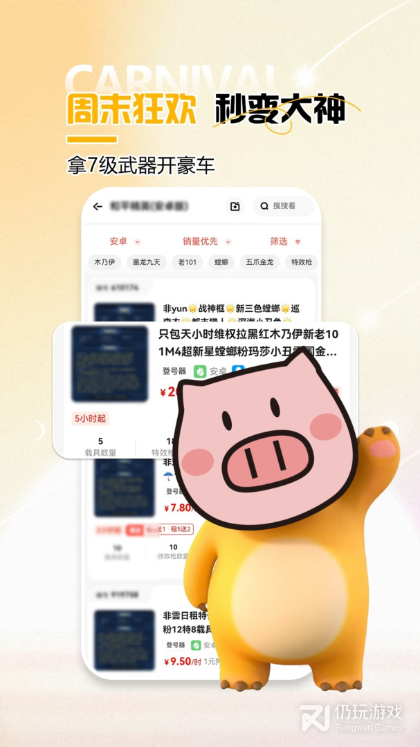 2.海量优质账号,拿7级武器开豪车做全场最靓的仔。人手必备,优质游戏账号,租号助手。