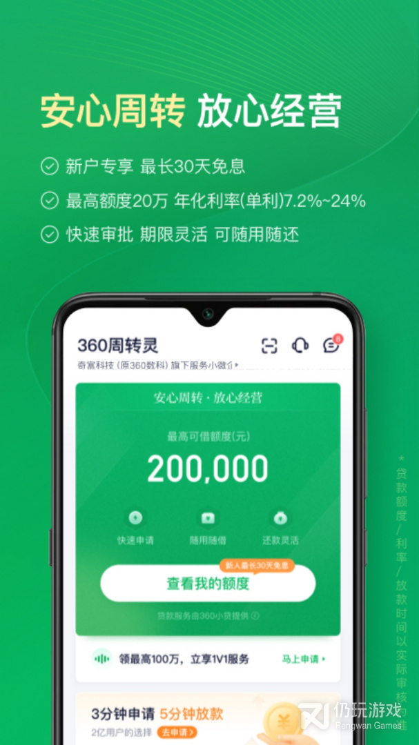 用户可以通过360周转灵进行小额贷款,app额度高,利息低,申请方便,仅需3步就能完成,帮您解决燃眉之急