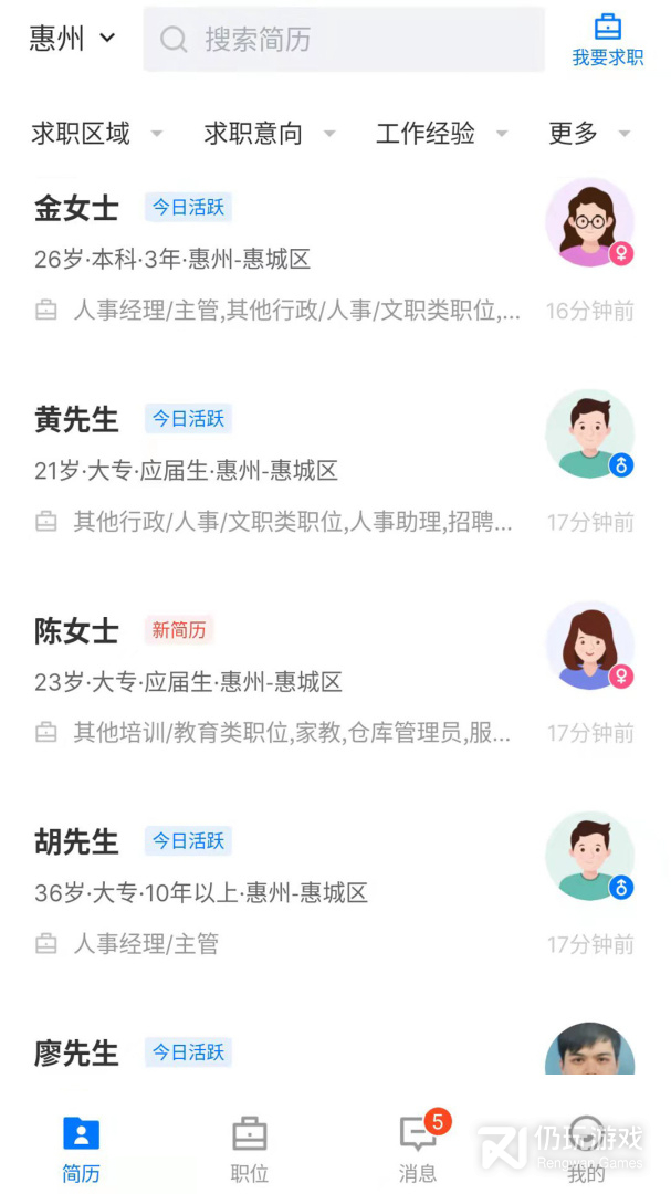 1、惠州直聘是好用的招聘软件,用户可以在上面直接搜索职位或者是企业的名称来查找,支持自定义区域以及职位分类等,操作起来很是方便,还有各种精准的职位为你推荐,让你可以更快的找到工作