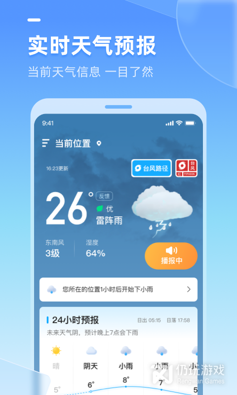 多多天气,预报未来几点几分下雨/下雪。