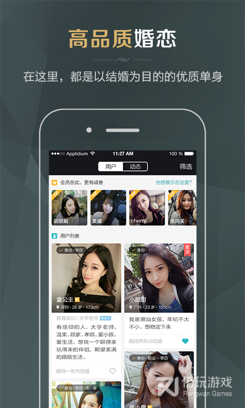2、同城品质婚恋是面向于单身群体的高品质婚恋交友平台,平台入驻全国各地数千万男生女生,注册时对每一位用户进行了严苛的身份认证,确保每一位用户都是真实的,在这里,你可以依据个人要求来对异性进行筛选,搜索匹配有缘人,为你推荐情投意合对象,支持多种社交方式,助你牵手成功觅得真心恋人