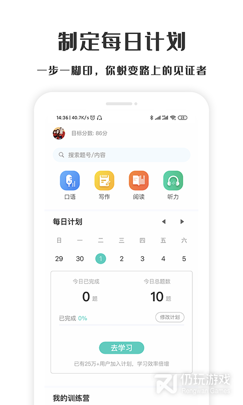 4、口语模考,帮助用户进行口语锻炼,制定每日学习计划,让学习更高效