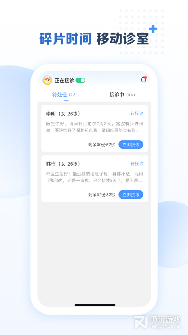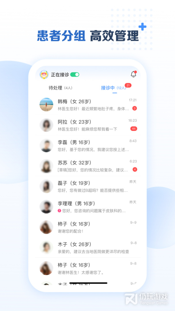 碎片时间,移动诊室,医患互动,实时沟通,患者分组,高效管理;