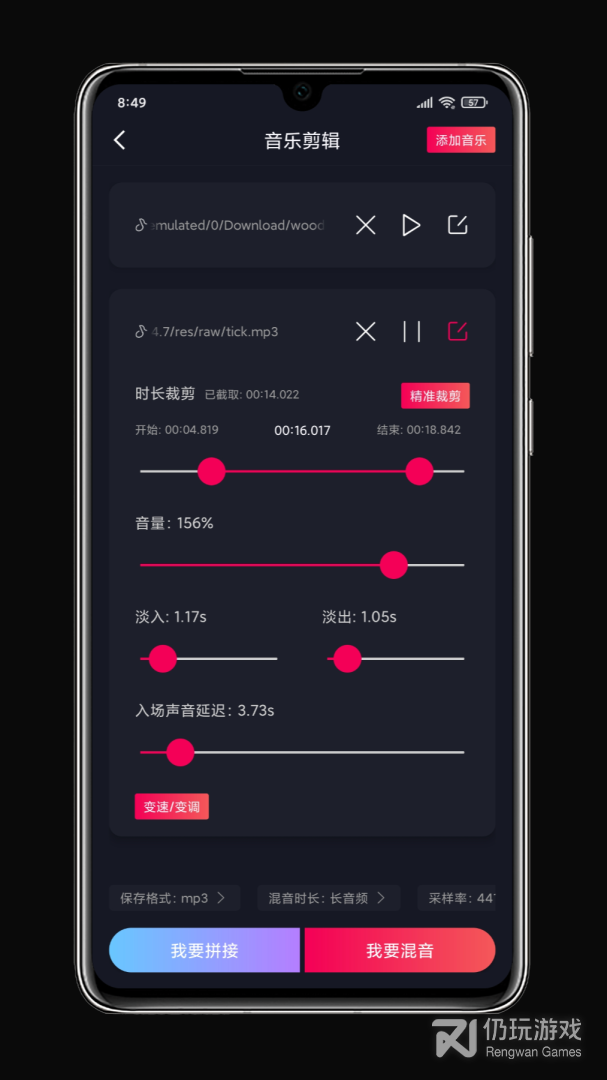 3、可以自己用手机编辑音频文件,保存为音乐或者铃声,网络上常用的格式都支持,功能上满足手机铃声制作绰绰有余
