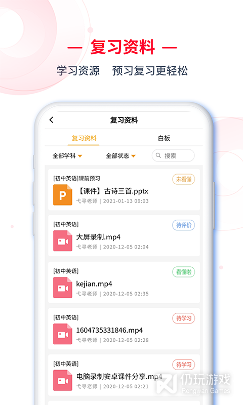4、资料学习课前导学、教学课件、课后资料,老师一键分享,课下反复学习