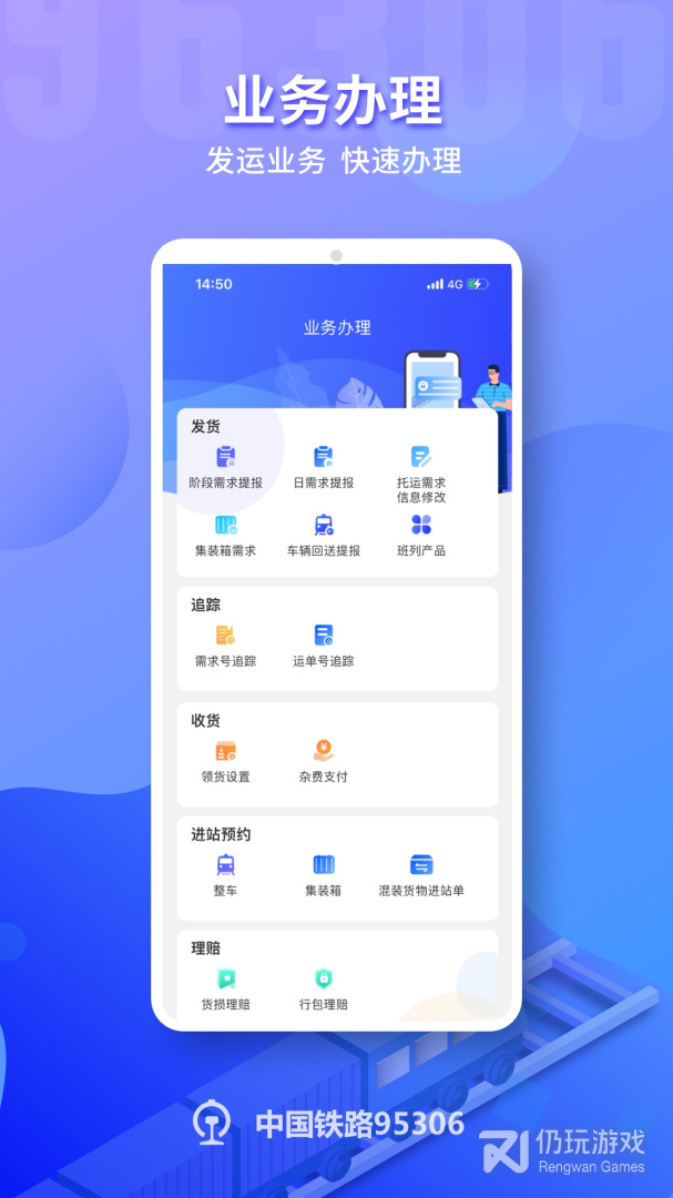 应用功能包括:发货、货物追踪、铁路资讯、运费计算、大宗商品信息