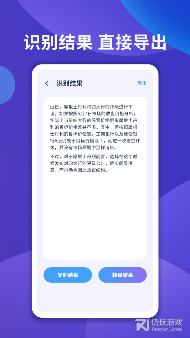 2、对于所识别的文字的内容,是支持到了翻译的处理,可以有效的将文字的内容进行到翻译处理