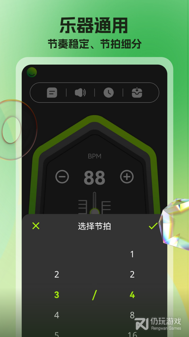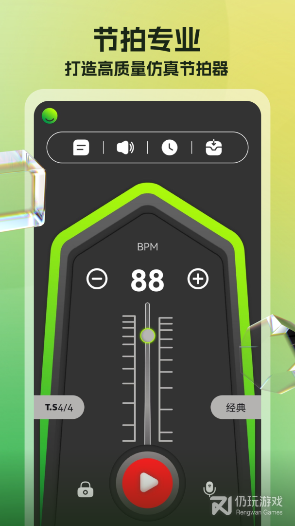 4、节拍器专为每一位音乐的爱好者而生,无论您是音乐界的大神还是初出茅庐的菜鸟,它都将是您不可拒绝的节奏调音工具