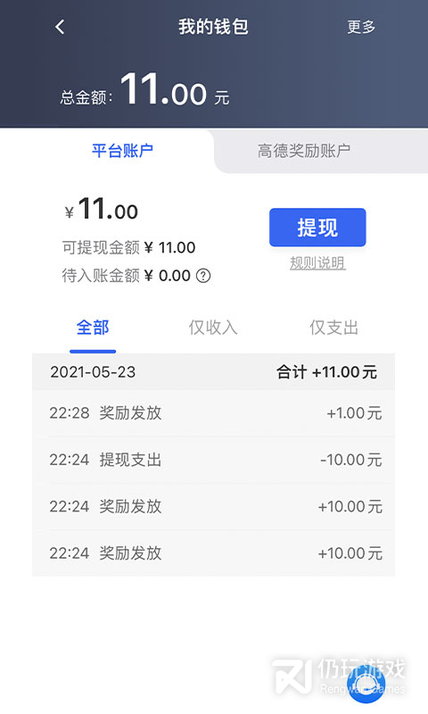 1、支持查看收入记录,了解各金额的收入时间、来源等,并查看总计金额