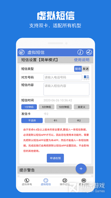 4、可以从通讯录中快速添加联系人,虚拟来电和虚拟短信编辑更快捷;