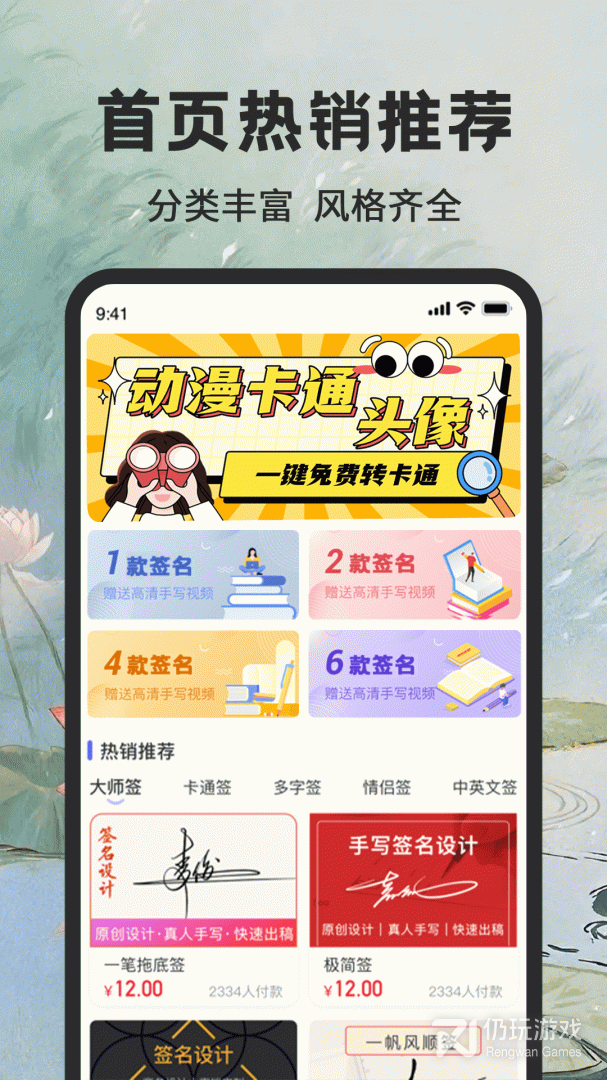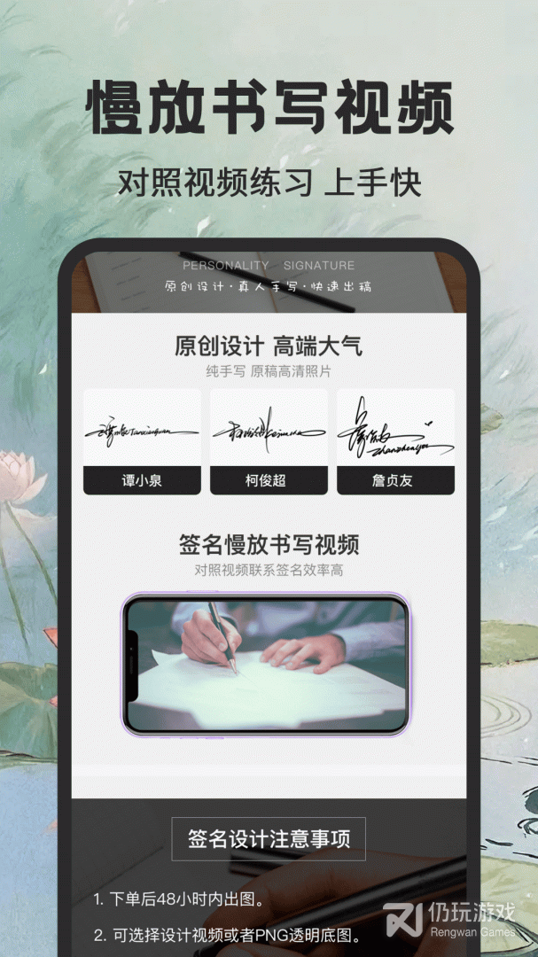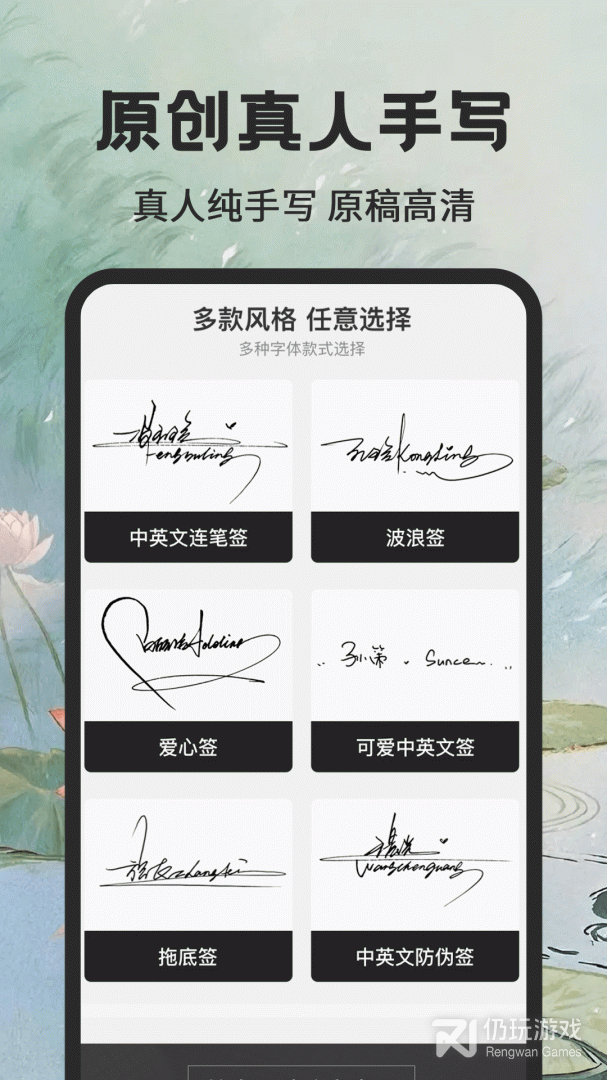 2、软件能够辅助各位小伙伴们设计出优质的艺术签名,多种不同的设计风格模板供用户选择,在线练习签名的书写方式,内存占用和流量消耗少,节省手机流量消耗