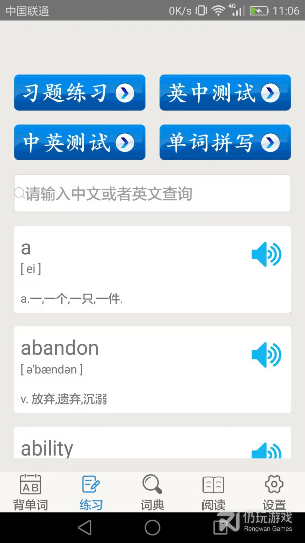 3、不懂意思的单词可实时本地查询含义,根据英文单词或者中文意思都能查到对应的单词