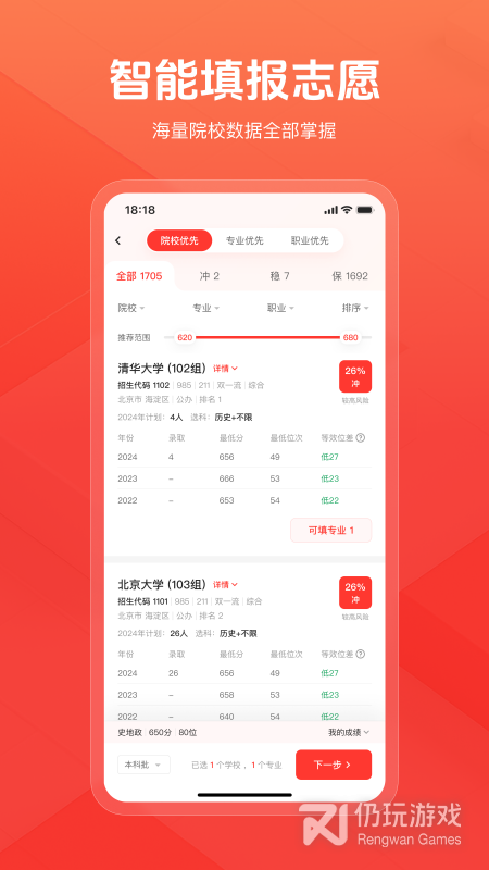 2、可以帮助用户快速查询自己的高考成绩,还可以了解高校的招生情况,智能推荐合适的理想院校。能够为高考的学生带来很多的服务和帮助